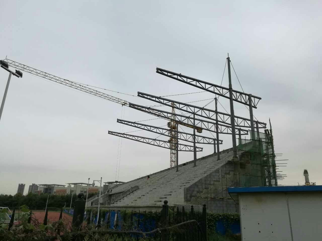 在完成基础主体工程后,目前,体育场看台项目进入了雨棚膜结构安装阶段,整个安装工作在有条不紊地进行中。
