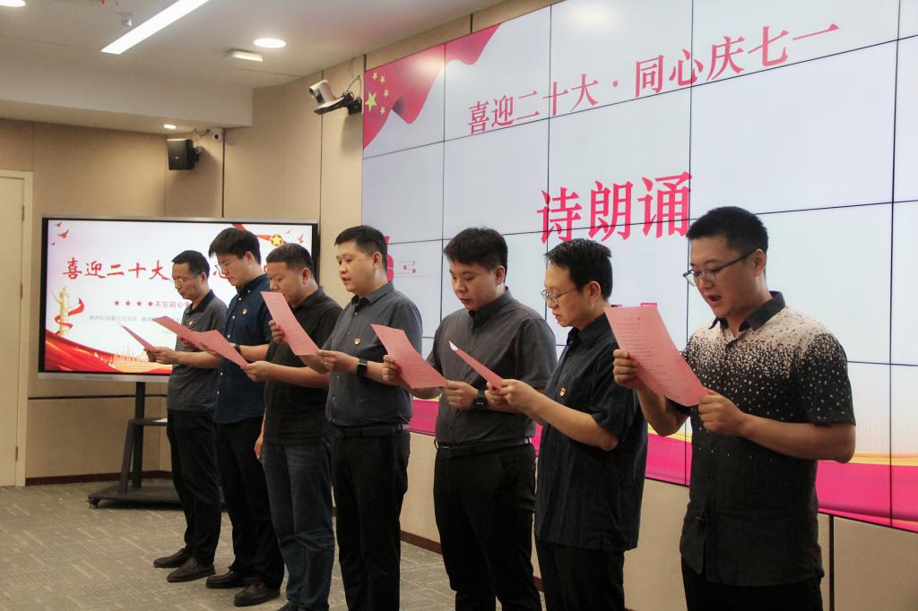 “你从十月的炮声中走来,你从嘉兴南湖中走来,你从井冈山走来,你从南昌起义的枪声中走来......今天是你的生日,作为祖国的儿女,为你送上祝福,带着中华民族永远向前、向前...”suncitygroup太阳集团支部书记张燕祥带领支部党员和入党积极分子高声朗诵《七一颂》。用饱含深情的诗词为党庆生,为国祝福。表达了对党和祖国的忠诚,对基建工作“敢于担当,敢于奉献”的初心使命。充分展示了基建党员干部担当作为、积极向上、昂扬向上的良好的精神风貌。现场气氛热烈,掌声不断。