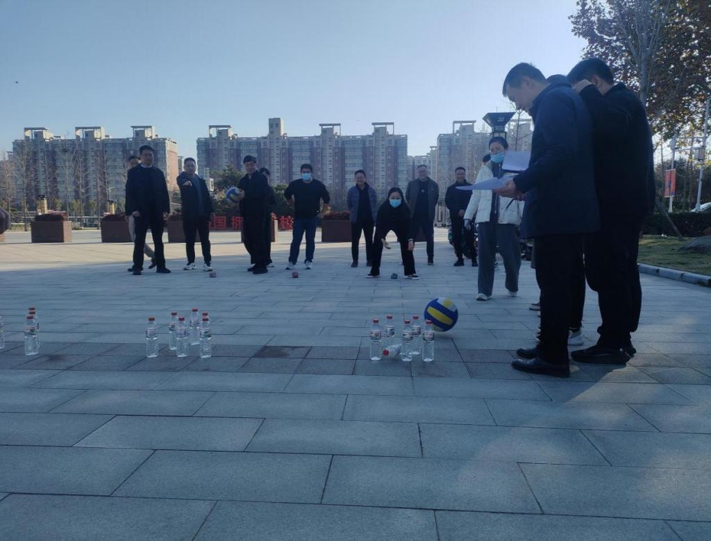 活动以“保龄球大作战”形式展开,教职工用排球击倒矿泉水瓶“保龄球瓶”,按击倒数量计分。活动前大家签到、热身,负责人讲解规则与注意事项。活动中,教职工依次投掷,现场气氛热烈。